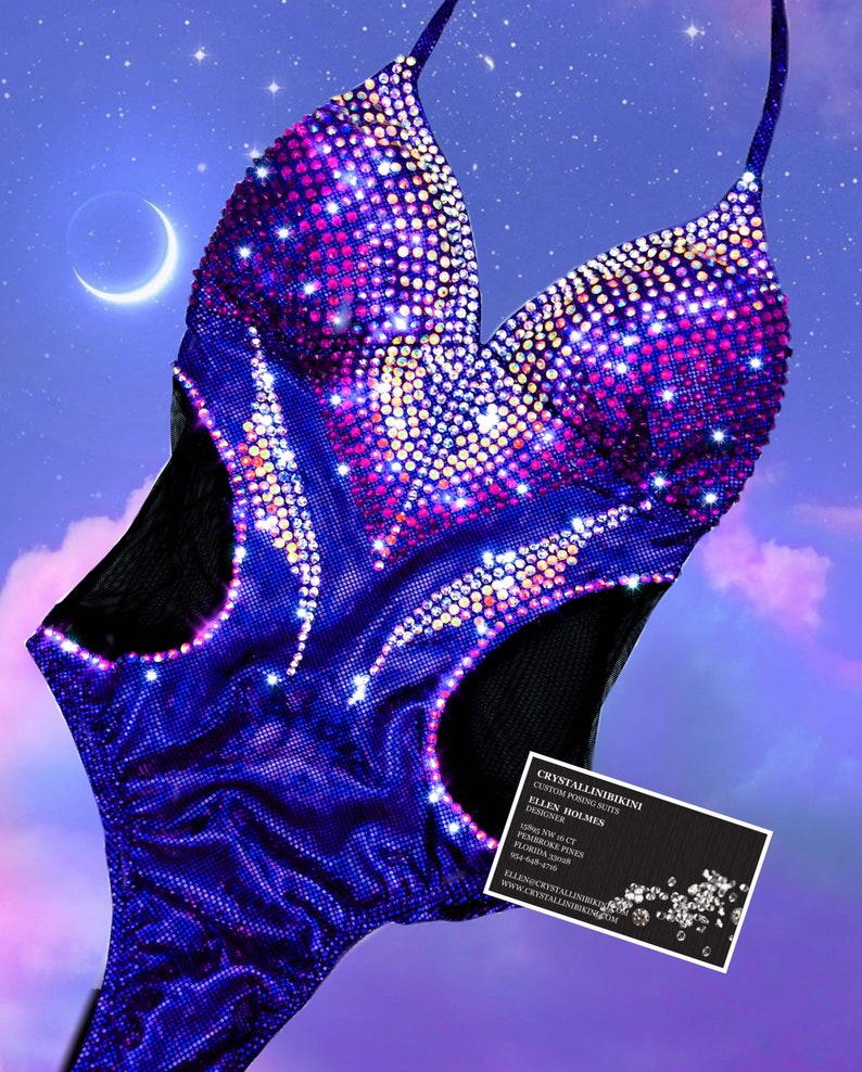 Ombre crystallized one piece fit model suit with mesh cutouts is made to your measurements with a 5 week turnaround